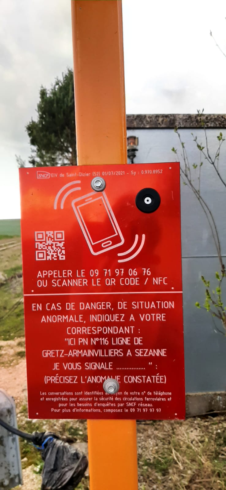 Les moyens d’appel d’urgence, signalés par des panneaux rouges, permettent de contacter rapidement les services ferroviaires en cas d’incident sur la voie.